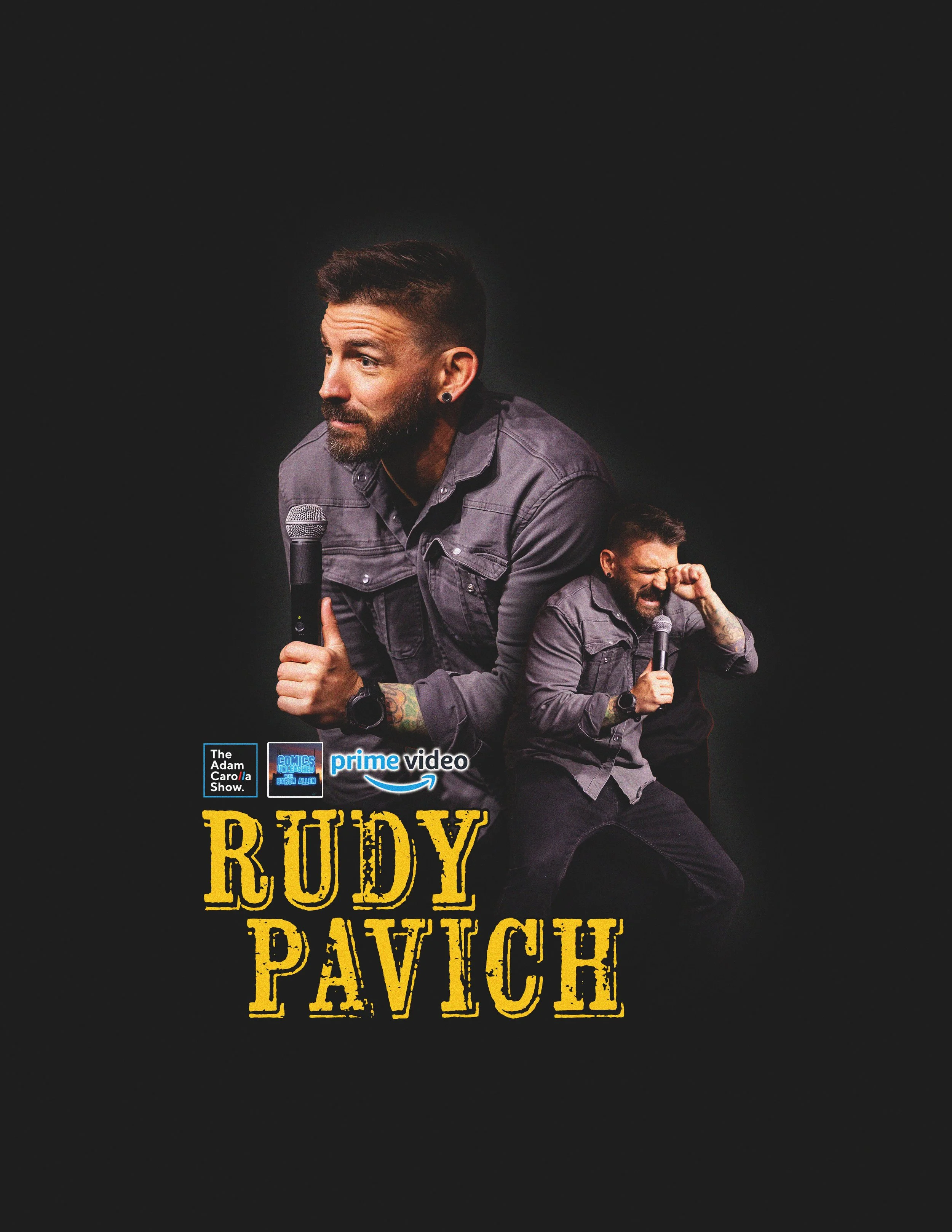 Rudy Pavich is a Minnesota comedian/podcaster and video/graphics producer. Since winning the 5th grade talent show with a stand up set he stole from A&E’s Evening at the Improv, Rudy’s passion has been on stage (with his own material now, of course).